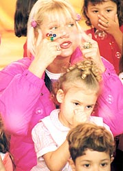 Xuxa no comando do programa infantil No Mundo da Imaginação.