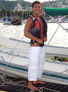 » Veja as fotos! » Ana Maria Braga diz que Dhomini é covarde » Dhomini "chega junto" de Sabrina em festa dos BBBsDhomini pôde comprovar que sua popularidade é mesmo muito grande. Na tarde desta terça-feira, dia 8, o vencedor do Big Brother Brasil 3 esteve na Marina da Glória, no Rio de Janeiro, para pilotar um jet ski. Depois de ouvir atentamente as instruções, o mineiro mostrou que é esperto também como piloto e até deu carona. Sempre bem-humorado, Dhomini atendeu os pedidos dos fãs de tirar foto e dar autógrafos.
