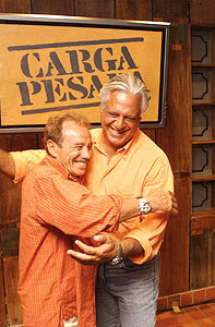 » Patrícia Pillar e Stênio Garcia gravam Carga Pesada no Rio » Veja fotos das gravaçõesEm um clima descontraído, os diretores Marcos Paulo e Roberto Naar reuniram a imprensa e o elenco de Carga Pesada, nesta quinta-feira, para falar sobre a volta de Carga Pesada. A série volta à programação da Globo no próximo dia 29, após o Casseta & Planeta, Urgente!, com quatro episódios inéditos. Antônio Fagundes e Stênio Garcia voltam a encarnar Pedro e Bino. Os atores falaram várias vezes do prazer em estar novamente gravando a série. "Carga Pesada faz parte da gente", disse Fagundes. "Até hoje, nos surpreendemos com o carinho que o público tem pela série", complementou Stênio Garcia. Embora não tenham participado dos episódios anteriores, Patrícia Pillar e Wagner Moura, que estarão lado a lado dos protagonistas nessas novas histórias, estão felizes com a participação na série da qual eram telespectadores. Para compor a personagem Rosa, uma caminhoneira que se apaixona por Pedro, Patrícia Pillar teve aulas de direção de caminhão e conversou com várias mulheres que são motoristas. "A gente não se dá conta de quantas mulheres começam a dirigir táxi, caminhão e ônibus para sobreviver", observa Patrícia. Já Wagner Moura será Pedrinho, filho de Bino e afilhado de Pedro. O ator, que brilhou em Deus é Brasileiro ao lado de Antônio Fagundes, disse que está envaidecido por estrear na TV com pessoas e se disse entrosado com a equipe. A amizade entre os caminhoneiros Pedro e Bino emocionou os telespectadores de 1979 a 1981, em 54 episódios. Na nova versão, os dois caminhoneiros continuam sócios do caminhão que usam para transportar de tudo um pouco.