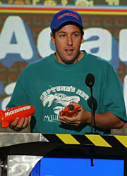 » Veja fotos da premiação » Celebridades se reúnem em festa do Oscar mirim nos EUAAdam Sandler foi o grande vencedor dos Kids’ Choice Awards, premiação organizada pelo canal de TV por assinatura Nickelodeon. O ator ganhou dois Blimp Awards na 16ª edição do prêmio: um de ator favorito, por A Herança de Mr. Deeds, e outro por sua dublagem no desenho animado Eight Crazy Nights. Amanda Bynes também levou dois prêmios: atriz favorita de cinema, pelo filme O Grande Mentiroso, e de TV, pelo programa The Amanda Show, do próprio Nickelodeon. O melhor ator de TV foi Frankie Muniz, da série Malcolm. O prêmio de melhor filme ficou com Austin Powers em o Homem do Membro de Ouro.
