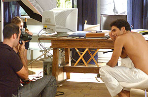 » Veja as fotos!Rafael Calomeni faz ensaio fotográfico em Mulheres Apaixonadas. Incentivado pela namorada Lorena, vivida por Suzana Vieira, Expedito (Rafael Calomeni) dá o primeiro passo para ingressar na carreira de modelo. Ele vai a um estúdio fotográfico estúdio fazer uma sessão fotográfica para fazer um book. Acompanham o rapaz Lorena, Vidinha (Julia Almeida) e Dóris (Regiane Alves). Após o ensaio, Expedito vai assistir ao desfile que acontecerá no hotel. As cenas deverão ir ao ar amanhã.