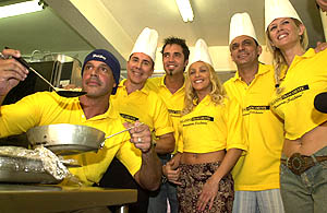 Os famosos visitaram um restaurante em São Paulo e atacaram de cozinheiros. Eles vestiram o avental para preparar molho e massa. Depois, os pratos foram servidos aos clientes, entre eles, Nani Venâncio e Verônica Costa, a "mãe loira do funk".