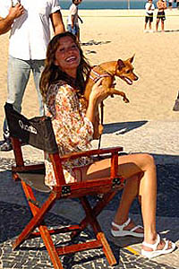 Na praia, Gisele manteve o mesmo bom humor. Distribuiu autógrafos e até acariciou um cachorro da raça pintcher que passeava com seu dono. A movimentação de pessoas, que está sendo controlada pela Polícia Militar, atrapalhou um pouco o início das filmagens.