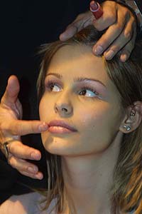 As atrizes, Wanessa e Yasmin serviram de modelos para a exibição dos novos produtos de maquiagem.