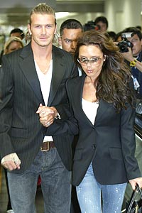 Beckham desembarcou na cidade acompanhado da mulher, a ex-Spice Girl Victoria. O casal precisou da ajuda de seguranças para controlar o tumulto.