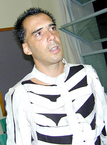 Arnaldo Antunes posa para a câmera da Terra antes do espetáculo começar