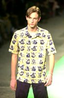 A inspiração no mar aparece também no corte das peças. Um dos destaques é a camisa com gola estilo marinheiro. As camisas também surgiram sem mangas e com botões prateados. O estilista apostou no corte reto dos ternos, cuja estampa apareceu predominantemente em risca-de giz.