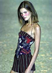 Os corseletes e as listras apresentados na coleção da Patachou não conseguiram ofuscar o brilho de Yasmim, filha da ex-modelo Luiza Brunet. A menina de 13 anos estreou na passarela nervosa, como atestou a mãe, mas não deixou de concentrar o alvo da maioria dos fotógrafos presentes.