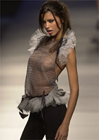 Seguindo o que costuma fazer, a Triton do estilista Tufi Duek apresentou uma moda jovem, bastante comercial e permitida apenas para aquelas meninas que estão com o corpo absolutamente enxuto. "Quis construir uma coleção envolvente", explica Tufi.Veja galeria de fotos do desfileAs calças vieram com boca larga e o cós baixíssimo, sempre usadas com cintos largos ornamentados com corrente e tachinhas (não vimos isso na última coleção de verão da grife?). Também surgiram babados e frufrus colocados estrategicamente sobre os quadris (algo perigoso para o biotipo da mulher brasileira, o chamado corpo de "violão"). "Essa foi uma escolha minha para ressaltar a feminilidade da mulher da Triton", disse o estilista. Regatas listradas com inscrições em inglês, miniblusas em tecidos leves, vestidos curtíssimos e microssaias completaram o look sensual proposto pela marca.