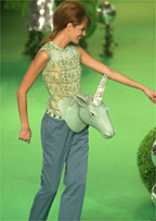Marcelo Sommer resolveu comemorar seu aniversário (que é hoje) de forma diferente e fechou o quinto dia de SP Fashion Week com festa. O estilista, que costuma inovar em suas apresentações, transformou a passarela num jardim encantado - com direito a unicórnios em forma de cintos ou chifres - e criou um clima de rave. Veja galeria de fotos do desfileSeguindo esta proposta, as roupas da coleção de verão de Sommer foram feitas para a noite, sem a necessidade de serem escuras. O estilista apostou num colorido estruturado, principalmente no verde água, prata, gelo e vermelho. O toque diferencial ficou por conta dos brilhos, presentes principalmente nos acessórios - destaque para a bolsinha em forma de globo de espelhos. As peças receberam bordados de flores, leves estampas e lavagem desgastada.