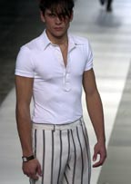A coleção Verão 2002 do estilista Ricardo Almeida veio recheada de listras. Em camisas, sempre ajustadas ao corpo, calças e jaquetas, elas apareceram em várias cores, como azul e vermelho.