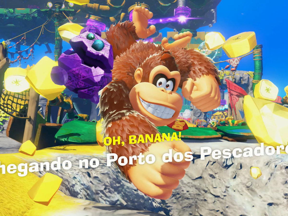 E aí, no meio da bagunça, quem aparece? Pauline, sim, ela mesma, agora com 13 anos, poderes ativados e dublagem completa em português do Brasil. Isso mesmo: o jogo inteiro está em português, com menus, falas e até reações dos personagens simiescos traduzidos com carinho. A localização é tão bem-feita que vira parte da experiência — ouvir a Pauline cantando ou o DK reagindo com expressões legendadas torna tudo mais envolvente. Não é exagero dizer que é uma das melhores localizações da Nintendo em anos.