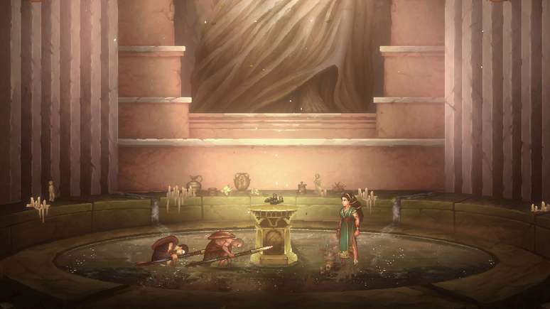Em vez do espetáculo tridimensional que redefiniu a franquia nos últimos anos, Sons of Sparta abraça um formato 2D de estética retrô. Desenvolvido pela Mega Cat Studios - especialista em jogos retrô - em parceria com a Santa Monica Studio, o jogo aposta em uma estrutura clássica de metroidvania: mapa amplo, progressão por habilidades, a repetição de rotas (o famoso backtracking) constante e foco em combate e plataforma. Funciona? Sim, ele funciona. Mas raramente impressiona.