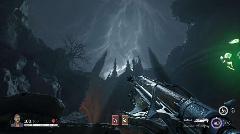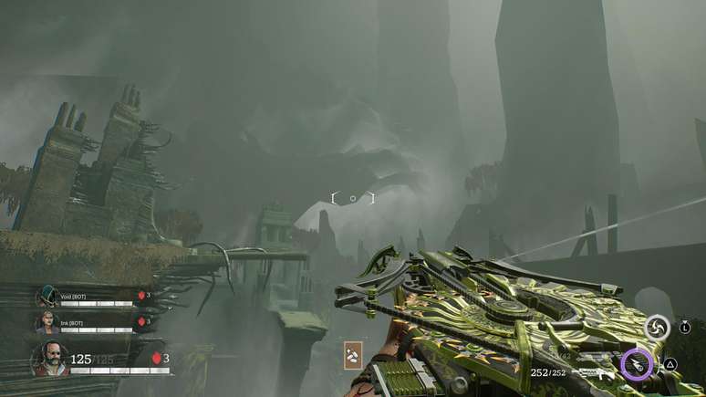 E é impossível não destacar como as armas são criativas, principalmente a Estacadora, que parece saída de Van Helsing, já que em vez de flechas ela dispara estacas de madeira nos inimigos. Outra que se mantém útil até os créditos é a Eletroimpulsora, que lança várias shurikens que ricocheteiam nas superfícies e cortam tudo pela frente. Essas armas também contam com habilidades únicas, desbloqueadas na árvore de upgrades com os pontos ganhos em cada incursão. A Eletroimpulsora, por exemplo, pode transformar seu choque básico em uma bola de energia que derruba tudo no caminho.