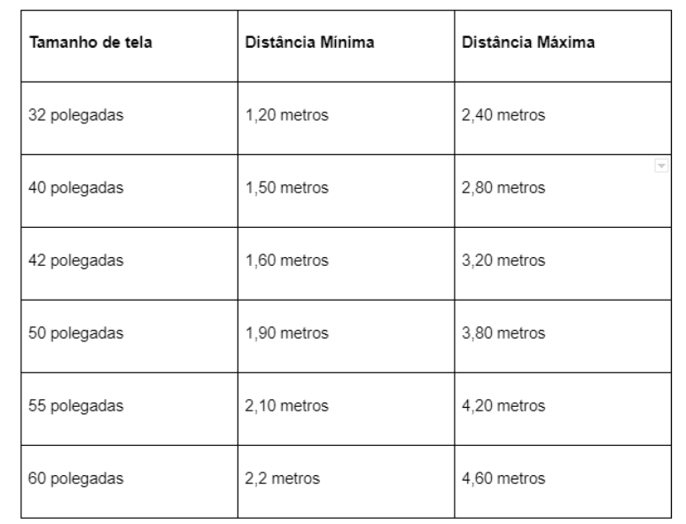 Pelo menos na minha casa, uma das maiores brigas é na hora de escolher o tamanho da televisão. Particularmente, eu gosto das telas grandes, mas isso pode variar, e muito, de acordo com o tamanho da sala ou quarto. Por conta disso, vamos dar algumas dicas de distâncias e qual a polegada ideal para cada uma delas: