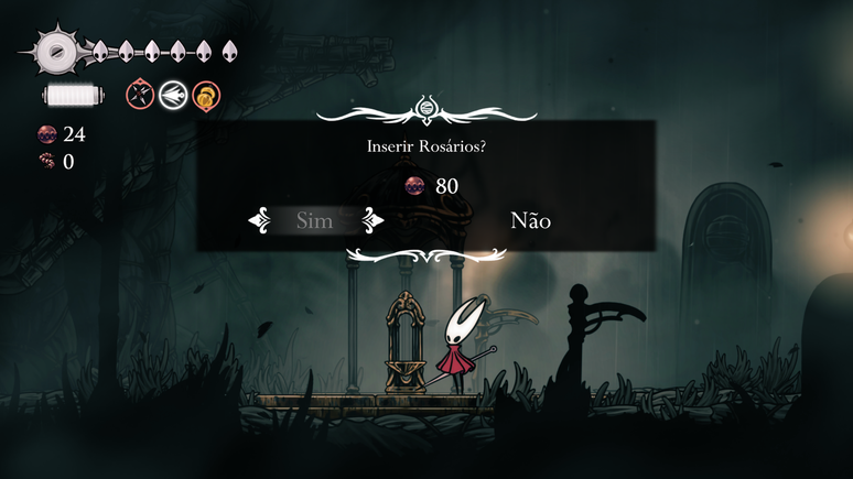 Uma novidade desse título é a presença de pontos específicos onde é possível usar um montador de rosários. Nele, você transfere parte dos rosários que possui e recebe um cordão que vai direto para o inventário. Esse recurso é bastante útil para quem tem receio de perder tudo que acumulou, principalmente ao perecer em áreas complicadas e precisar voltar para recuperar a quantia presa no casulo — algo que muitas vezes resulta em frustração e perda de uma soma enorme.