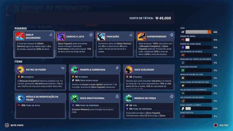 Doomfist é a escolha certa para quem quer ditar o ritmo da luta desde o primeiro contato. Abala Secundário e Gancho a Jato ajudam a entrar e sair com mais segurança nas rodadas iniciais, enquanto Pancadão e Superpoderoso ampliam o impacto quando o jogo começa a ficar mais intenso. Reserva de Força e Soco Gravitacional garantem presença constante nas trocas, com Módulo de Modificação da Talon e Manopla Carregada deixando cada avanço mais ameaçador. Soco Acelerado e Matriz de Poder fecham a build transformando Doomfist em um iniciador extremamente difícil de conter quando ele encontra espaço para pressionar.