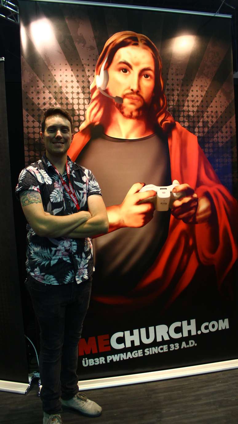 Um dos estantes mais divertidos da E3 não tem game nenhum, mas uma filosofia que vale para todos. "Os games têm o poder de conectar pessoas e nossa igreja prega isso", diz Brian. "E que todos se divirtam para todo o sempre. Amém."