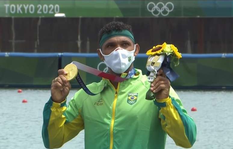 Isaquias comemora ouro na canoagem com Kamehameha