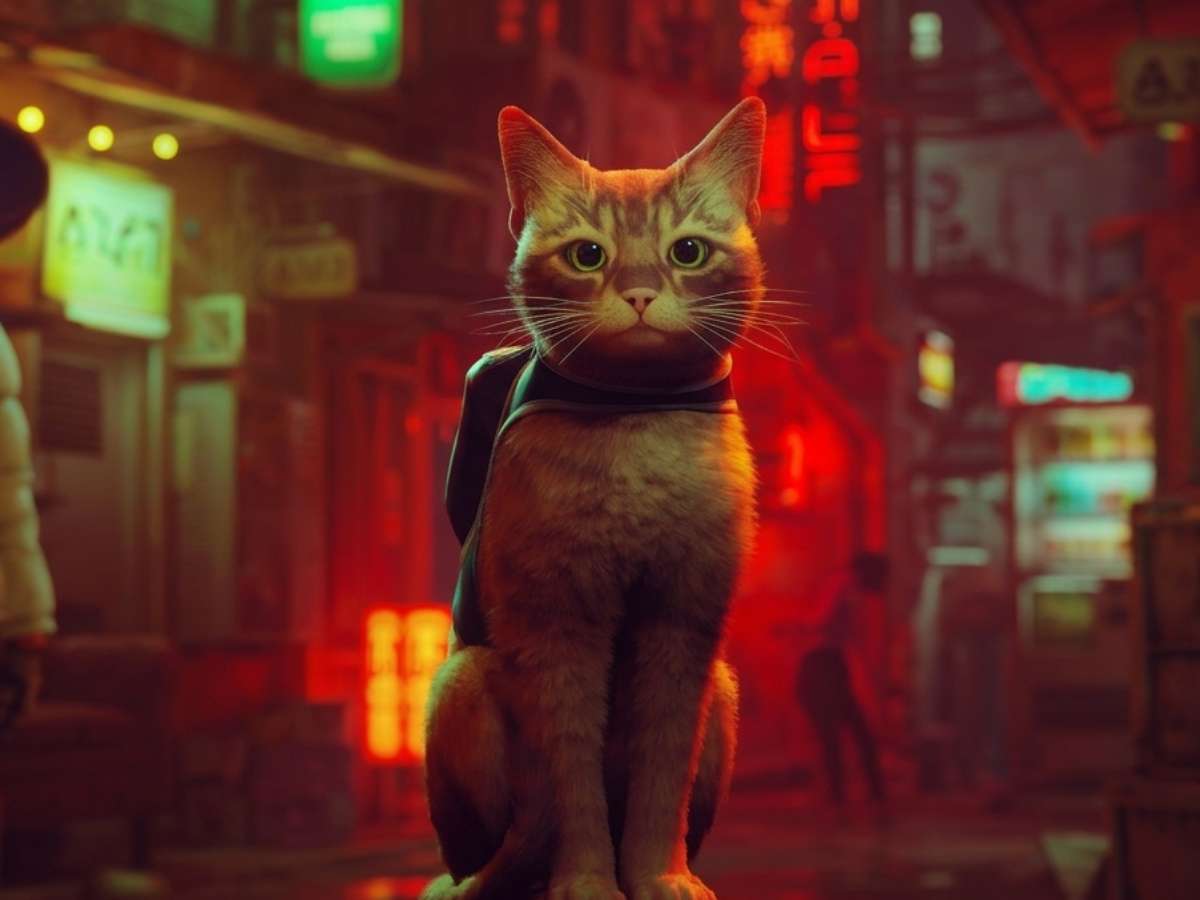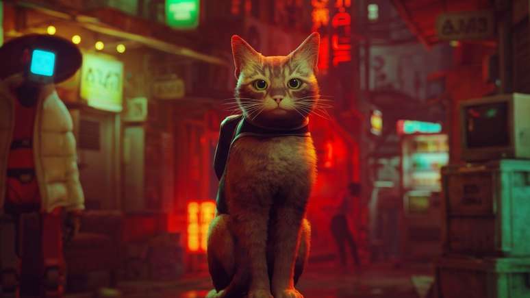 Não dá para começar sem o gato laranja mais famoso da atualidade. Em um mundo cyberpunk desolado e habitado apenas por robôs, o gatinho de Stray não precisa falar uma palavra para carregar a narrativa emocional do jogo. Com um botão dedicado exclusivamente para miar e mecânicas que nos permitem derrubar objetos de prateleiras só por puro prazer, ele personifica a essência felina enquanto explora o impacto da ausência humana.