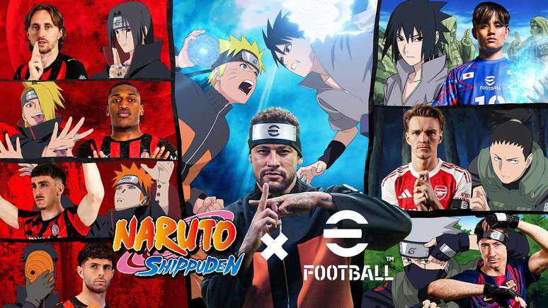 A Konami anunciou hoje (30) uma colaboração especial (e até mesmo inusitada) por tempo limitado entre o eFootball e o anime Naruto Shippuden. Como destaque da colaboração estão os emparelhamentos de jogadores, incluindo Naruto Uzumaki x Neymar Jr. e Sasuke Uchiha x Takefusa Kubo, combinando o mundo dos animes e o futebol.