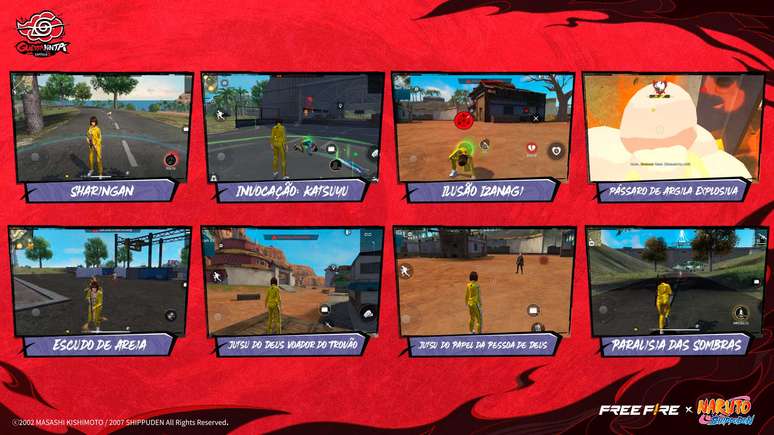 Assim como na primeira parte da parceria, oito novas habilidades Jutsu inspiradas em poderosos personagens ninjas também entrarão no campo de batalha do Free Fire: