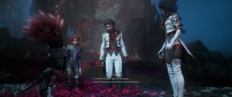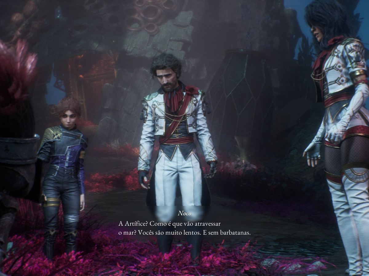 Logo no começo da demo, você controla Gustave, o primeiro membro do time. Ele é o típico protagonista sério, com um jeitão de “tô aqui porque tenho que estar”, mas nada muito marcante de cara. Pouco depois, você encontra Lume, e depois de longas batalhas, Maelle, completando o trio jogável. E aqui vem a primeira crítica: os personagens demoram pra ter carisma. No início, parece que você tá jogando com um trio aleatório de um RPG qualquer, mas conforme a demo avança e você desbloqueia habilidades e vê os laços entre eles crescendo, o jogo começa a ganhar aquele tempero que faltava. Destaque para o relacionamento entre Gustave e Maelle.
