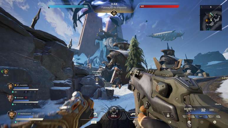 A estrutura das partidas lembra bastante um MOBA. Precisamos coletar itens para reforçar nossa base, obter Vesper para comprar armas, armaduras ou ferramentas de incursão com diferentes raridades no Flynn e, claro, explorar o mapa em busca de baús espalhados pelo cenário, também divididos por raridade. Essa fase acontece antes da partida engrenar de vez e define bastante o ritmo inicial do confronto.