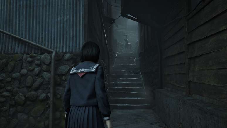 Sobre o combate em si, não espere algo próximo do que foi visto no remake de Silent Hill 2. A personagem possui uma barra de vigor e a possibilidade de travar a mira no inimigo, o que ajuda a manter controle do espaço. Podemos usar ataques pesados que atordoam e ataques rápidos que causam menos dano mas continuam eficientes. Há também um sistema de progressão que permite evoluir atributos como vigor e vida ao fazer doações nos santuários, que servem tanto como ponto de salvamento quanto como estação de melhorias.