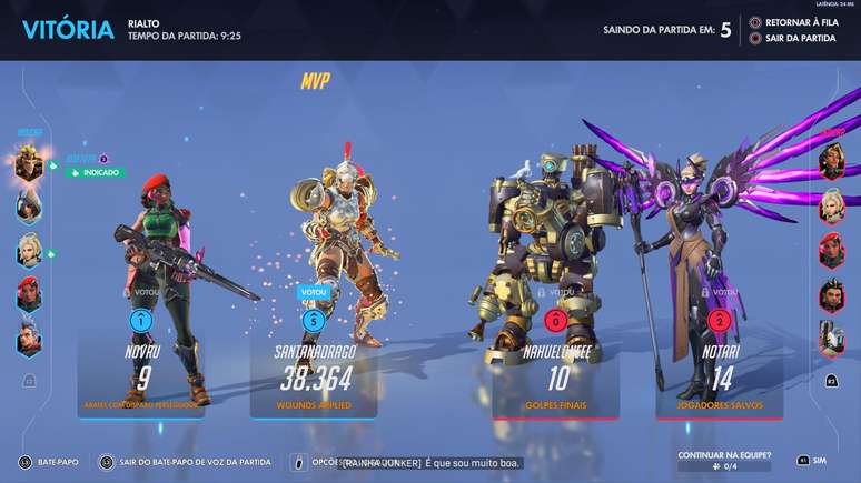 As novidades não ficam só na Sierra e nas recompensas. Também há melhorias de qualidade de vida que já eram esperadas. A principal delas é o retorno da tela de votação de MVP ao fim das partidas. Não há recompensa direta, mas é uma forma de reconhecer melhor os jogadores, permitindo votar entre os quatro destaques da partida em vez de apenas usar a recomendação padrão.