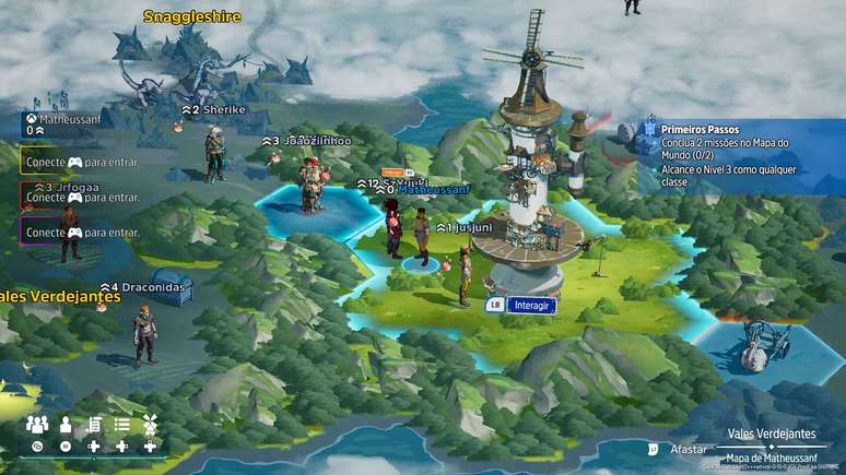 Nesse hub temos acesso ao mapa do mundo, o que nos dá uma noção do tamanho da região disponível nesta prévia. Boa parte das missões só pode ser concluída uma única vez, e ao completá-las, somos recompensados com baús contendo equipamentos e itens aleatórios. Mas também existem as chamadas missões de aventura, que podem ser concluídas várias vezes e são ótimas para farmar armaduras e armas. Essas missões podem ser jogadas solo ou em grupo.