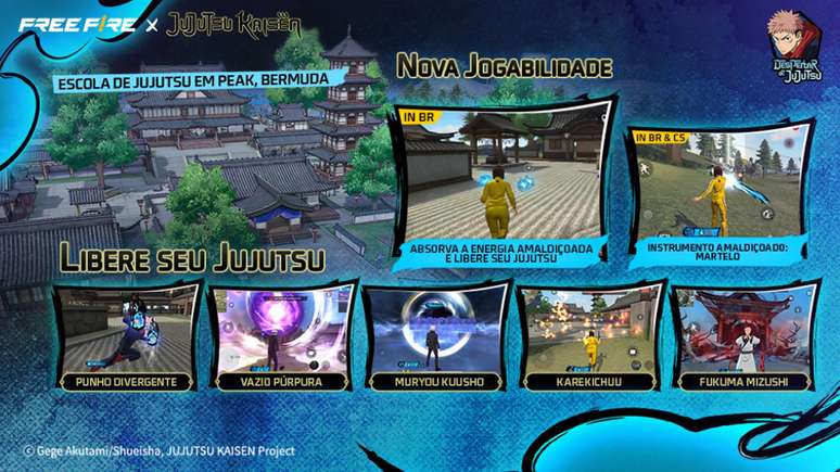 Popular entre os fãs, a colaboração será lançada com a mais ambiciosa reformulação da Peak até agora, transformando a área mais popular de Bermuda numa Escola de Jujutsu ao melhor estilo Free Fire. Projetada com detalhes meticulosos e uma atmosfera inconfundível do anime, a nova área mergulha totalmente os jogadores no mundo de Jujutsu Kaisen.