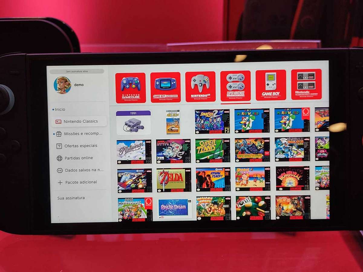 A tela de 7,9 polegadas do console chama a atenção positivamente, não apenas pelo tamanho, mas também por ter HDR, resolução 1080p (garantindo mais nitidez) e performance em até 120 fps. No entanto, a experiência na TV parece ser mais interessante, já que o Switch 2 tem suporte para resolução 4K ao estar na base, que funciona apenas com o novo console, não sendo compatível com o Switch original.