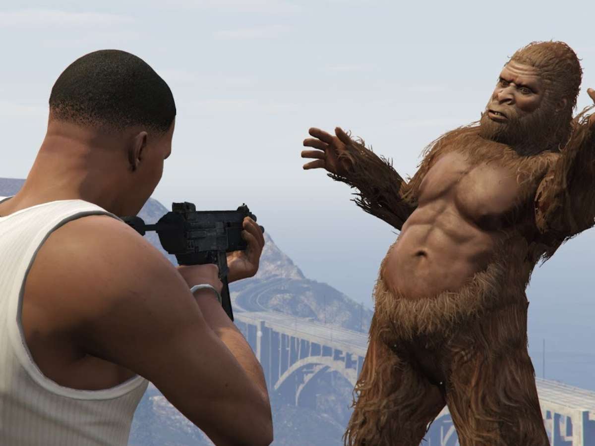 O easter egg mais famoso da franquia está escondido em GTA V, sob a forma do popular mito do "Pé Grande". Ainda na época de GTA San Andreas, surgiu um rumor que que havia uma criatura "Big foot" escondida no jogo, fato que anos depois provou-se falso. Ainda assim, o mito se manteve popular o suficiente para ser realmente incluído em GTA V, com a criatura aparecendo em duas missões.