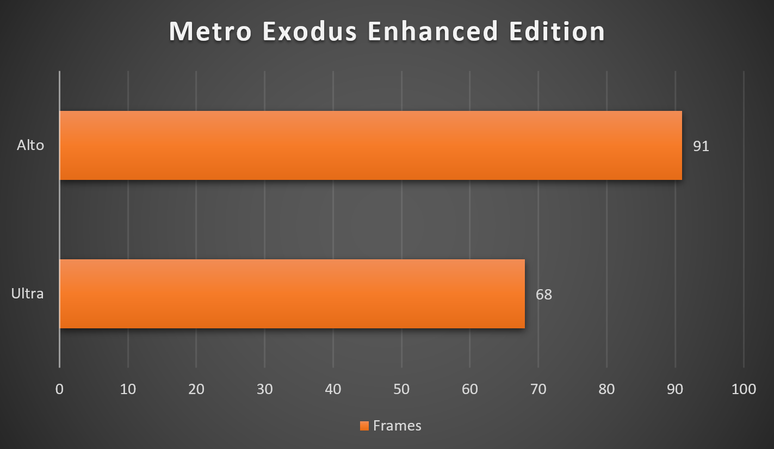 Nosso próximo teste é com Metro Exodus Enhanced Edition. Escolhemos essa versão pois toda a iluminação do jogo é gerada via Traçado de Raios, então não há para onde fugir no benchmark.