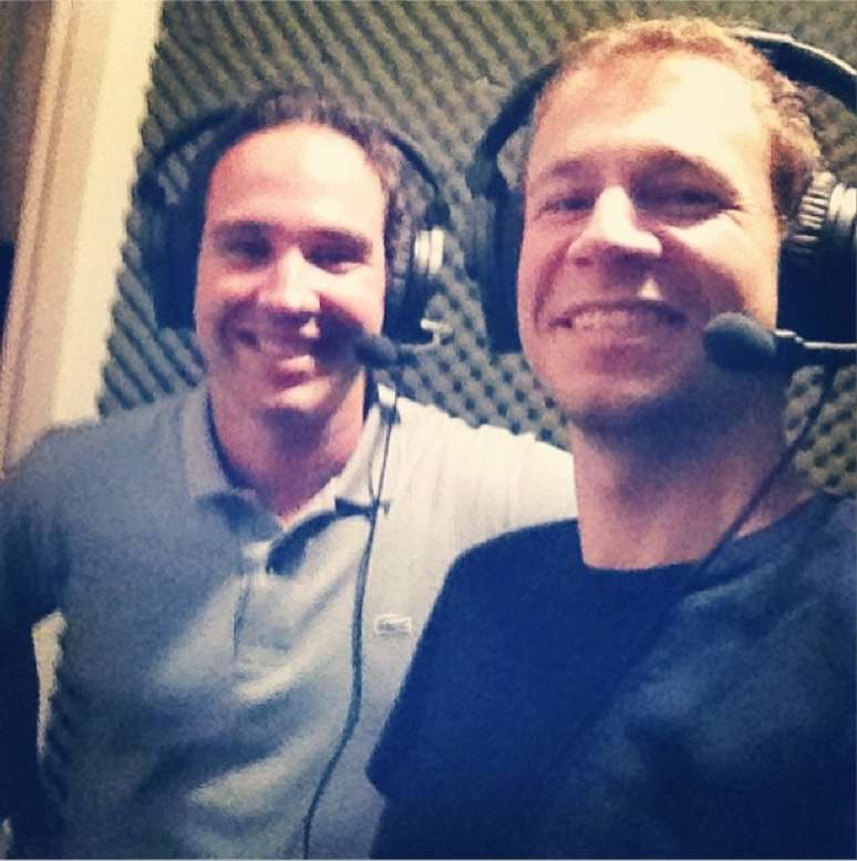Thiago Leifert e Caio Ribeiro gravam vozes para 'FIFA Copa do Mundo 2014'