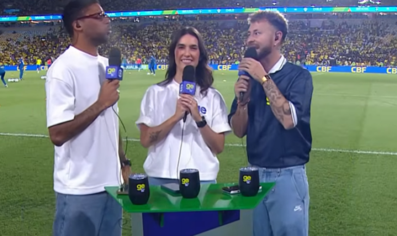 O estilo de reportagem também seguiu as loucuras da Cazé TV. Coube a Sofia Miranda caçar pessoas fora do Maracanã para entrevistar até que achou um ambulante. Com latinhas de cerveja na mão, o vendedor mandou seu recado para Neymar. Aliás, nos bastidores, a repórter pediu para experimentar a comida de Ivete Sangalo no camarim e mostrou estar bem à vontade na função.