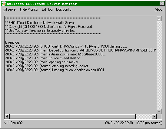 O limite inicial do servidor é de 32 usuários, mas pode-se modificar isso alterando o arquivo de configuração do SHOUTcast Server.