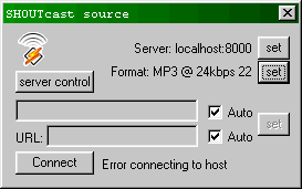 Clique em OK depois de configurar e depois no botão Connect para começar o streaming. Certifique-se que o SHOUTcast Server está aberto, pois sem ele a rádio não funciona.
