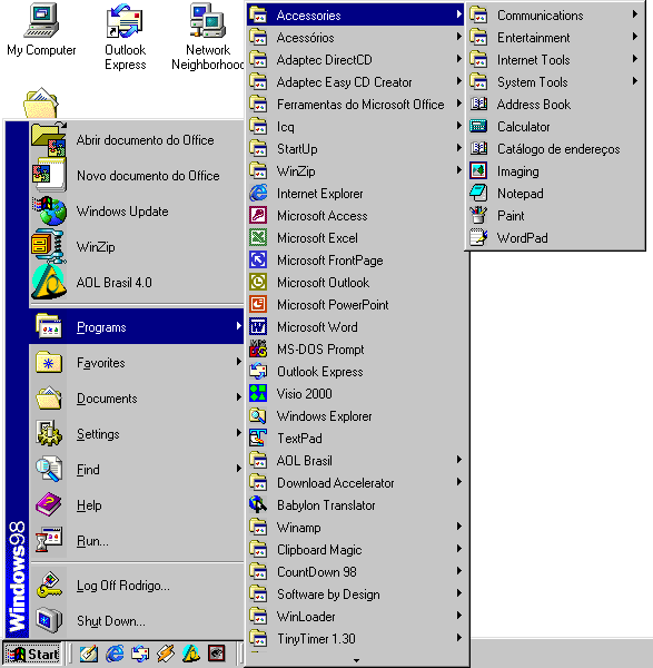 Quando se instala um software, ele é automaticamente adicionado ao menu de Programas, que é ativado pelo botão Iniciar.