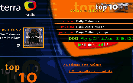 Música: o mesmo procedimento vale para escutar áudio, como por exemplo as da Rádio Terra (imagem abaixo):