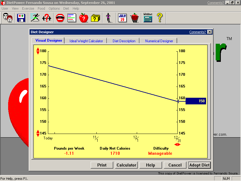 O Diet Power também tem a finalidade de ser uma espécie de personal trainer virtual, dando mais ênfase para a nutrição do que para os exercícios. Em comparação ao CrossTrainer (primeira ficha desta página), seu visual é mais simples e amigável.