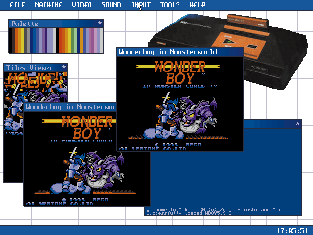 Esse é, sem dúvida, o mais bonito dos emuladores para os sistemas da Sega. Ele permite a visualização da palete de cores de cada jogo, além de exibir múltiplas telas do mesmo momento do game (a utilidade desse atributo não foi descoberta pela Magnet...).