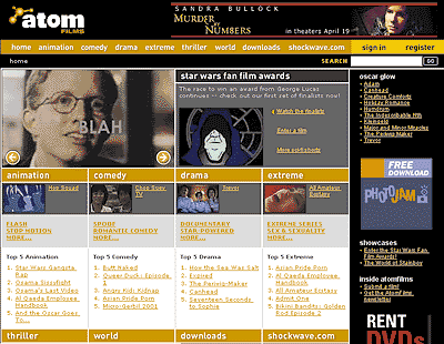 são o forte do site. A maioria dos vídeos é de produtores independentes. Pelo tamanho do AtomFilms,