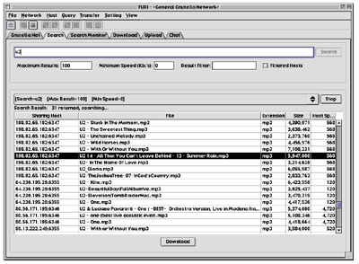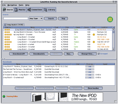 Cliente da rede Gnutella baseado em Java, que apesar de ter uma cara meio pecezóide e demorar séculos