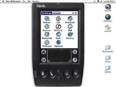 E isso geralmente demora umas duas semanas. Achar as ROMs pela Internet em algum site pirata é muito difícil; portanto, o melhor caminho é o legal, mesmo. Além das ROMs, você precisa de arquivos de skins (tem de graça no site da Palm) para colocar a "cara" do modelo do Palm na tela. A emulação é muito boa e dá para se divertir fuçando nos diversos modelos de Palm e testando programas. Boa opção para quem quer experimentar um Palm antes de comprar, ou para quem está em dúvida se deve ou não usar determinado programa.