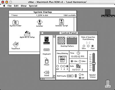 Algo bastante inusitado: um Mac Plus funcionando dentro do OS X no seu Mac atual. E para que isso? Para os saudosistas (sempre eles!) relembrarem como era difícil a vida usando um Mac antigo, com um sistema revolucionário mas que ainda engatinhava. Ou para abrir suas primeiras ilustrações feitas em MacDraw, guardadas em um disquete empoeirado que milagrosamente ainda funciona. Vale notar como as coisas evoluíram. É um prazer, por exemplo, jogar aqueles jogos antigos em preto e branco, quando cor ainda era um luxo. Para ele funcionar, você vai precisar de uma ROM do Plus original, que dá para conseguir usando um programa específico para capturar as informações de um Mac Plus (se você tiver um por perto), ou tentando garimpar uma ROM pirata (perdão!) pela Internet. Você também vai precisar de uma imagem de um disquete do System 6 original para "ligar" o Mac Plus. Esse está disponível de graça no site do autor.