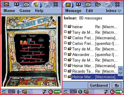 Além do browser e do cliente de email, há um player de filmes MPEG-4, um jogo de xadrez e um leitor para arquivos de Word, Excel e PDF. Não dá para editar esses arquivos, como no Documents To Go do Palm, mas você pode até utilizar seu celular para carregar arquivos de um Mac para outro (desde que ambos possuam conexão Bluetooth).