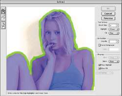 | Recortar imagens literalmente cabeludas agora é brincadeira. Basta dar o comando Extract, desenhar grosseiramente o contorno da área a ser recortada e o Photoshop se vira com o resto |