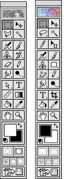| Foi criado um botão para pular com um documento do Photoshop (à esquerda) para o ImageReady e vice-versa |